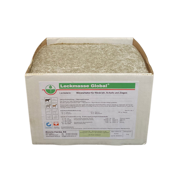 Global© ist Mineralfutter als Leckmasse für Rindvieh, Schafe und Ziegen.